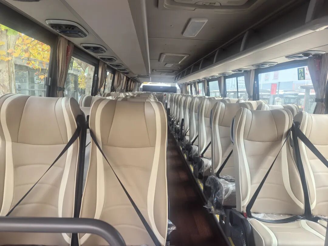 据了解,此次开通的定制公交共投入4台新配置的软座新能源车辆。车身长达12米,采用白蓝配色涂装,并印有醒目的“武汉公交”标识及“公交通勤 智慧畅行”字样,与常规公交形成区分,便于乘客识别。车内设有54个皮质座椅,每个座位均配备安全带,兼顾安全与舒适。