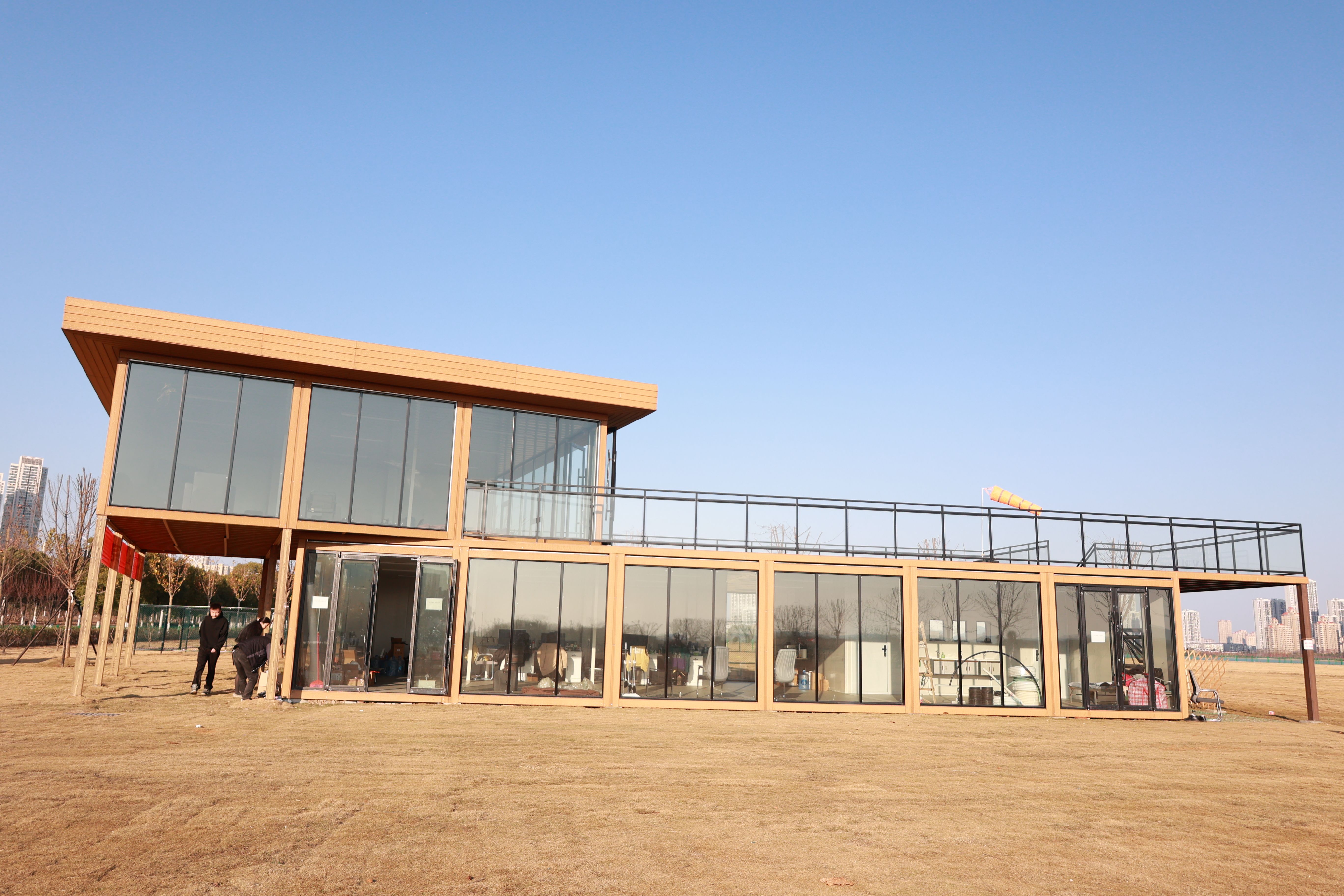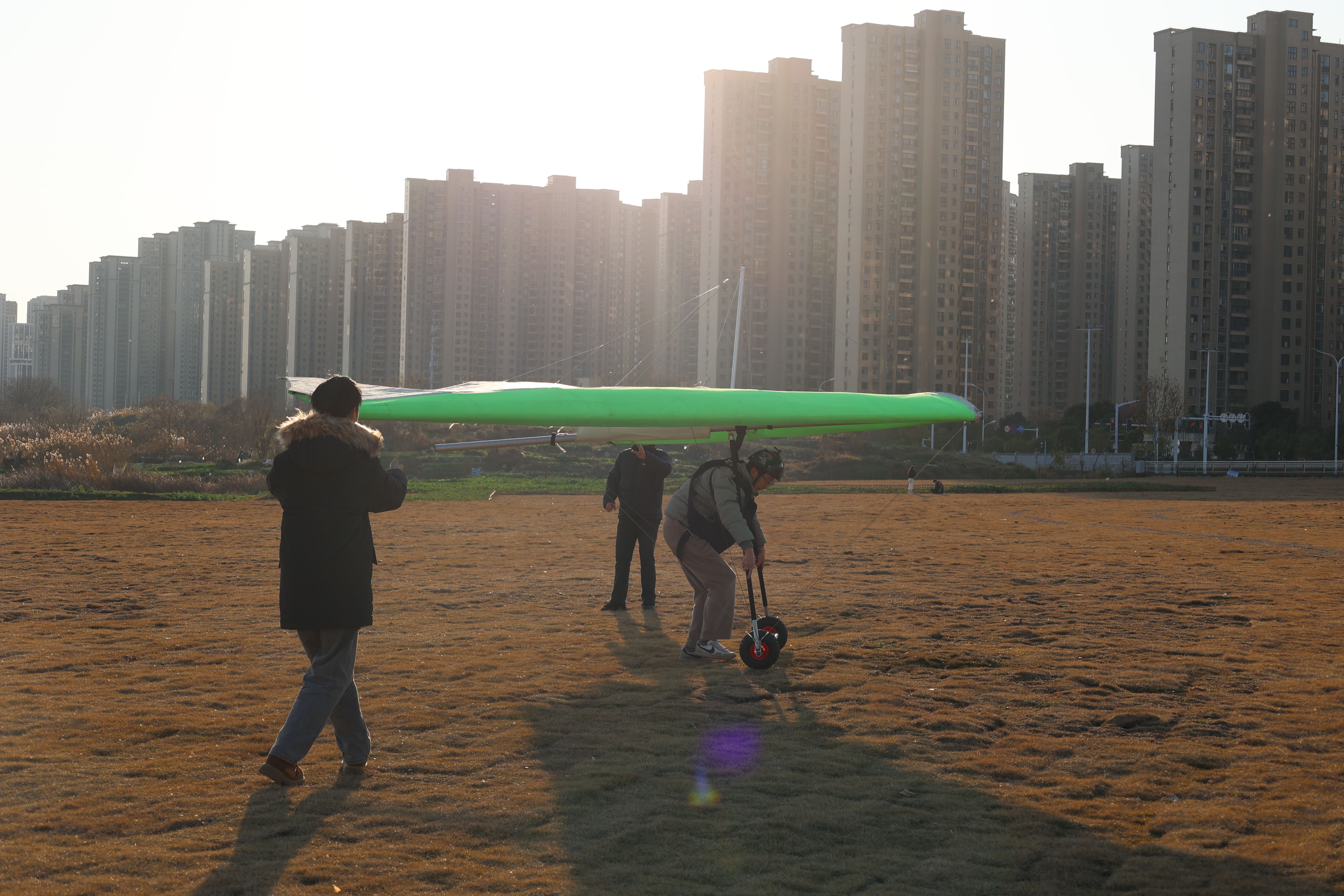 长江日报记者来到青菱湖西岸青菱河路边,一片开阔舒展的草地豁然映入眼帘。营地工作人员正在进行轻型固定翼运动飞机测试,吸引不少散步市民驻足围观。“这片营地并非单纯的产业园区,中间特意预留了大片公共空间,就是为了给市民提供一个散步游玩的好去处。”武汉洪投智航科技有限责任公司市场运营部部长陈曦介绍。