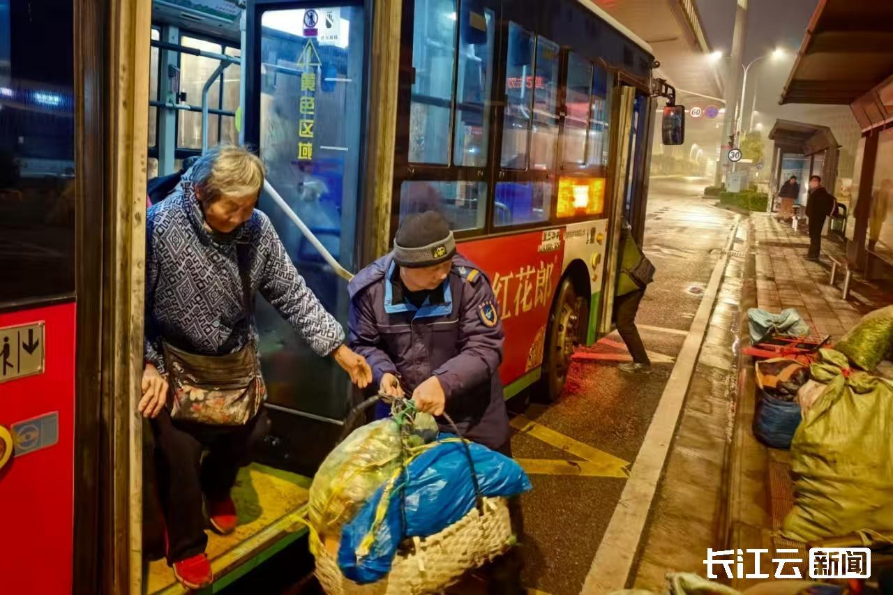 “大家慢一点,小心脚下,重的菜我来帮你们抬。”清晨5时15分,瞿啟发驾驶着“兴农专线”从盐坊湾公交停车场准点发车。5时29分,车辆稳稳停靠三三零三工厂站,车门一开,菜农们肩扛手提,带着沾着晨霜的红菜苔、小白菜、大蒜叶等时令蔬菜走进车厢。见状,瞿啟发立刻起身,一边耐心维持秩序,一边主动上前帮扶年迈菜农,将沉重的菜筐稳稳抬上车。