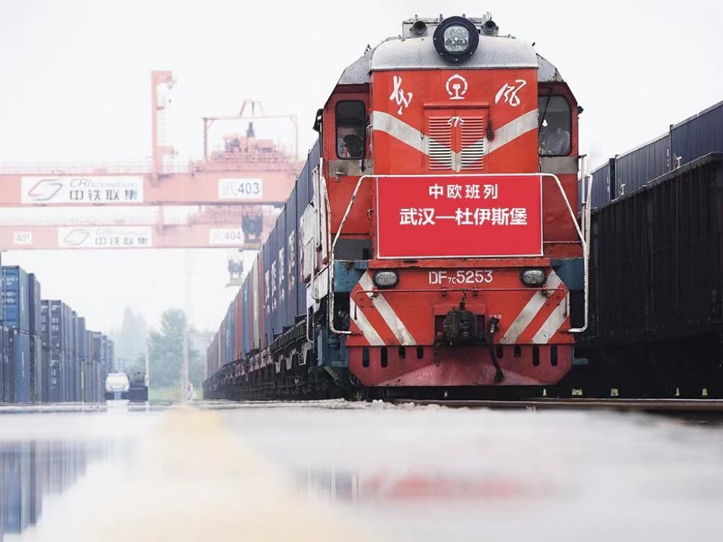 图为开行的中欧班列(武汉)。