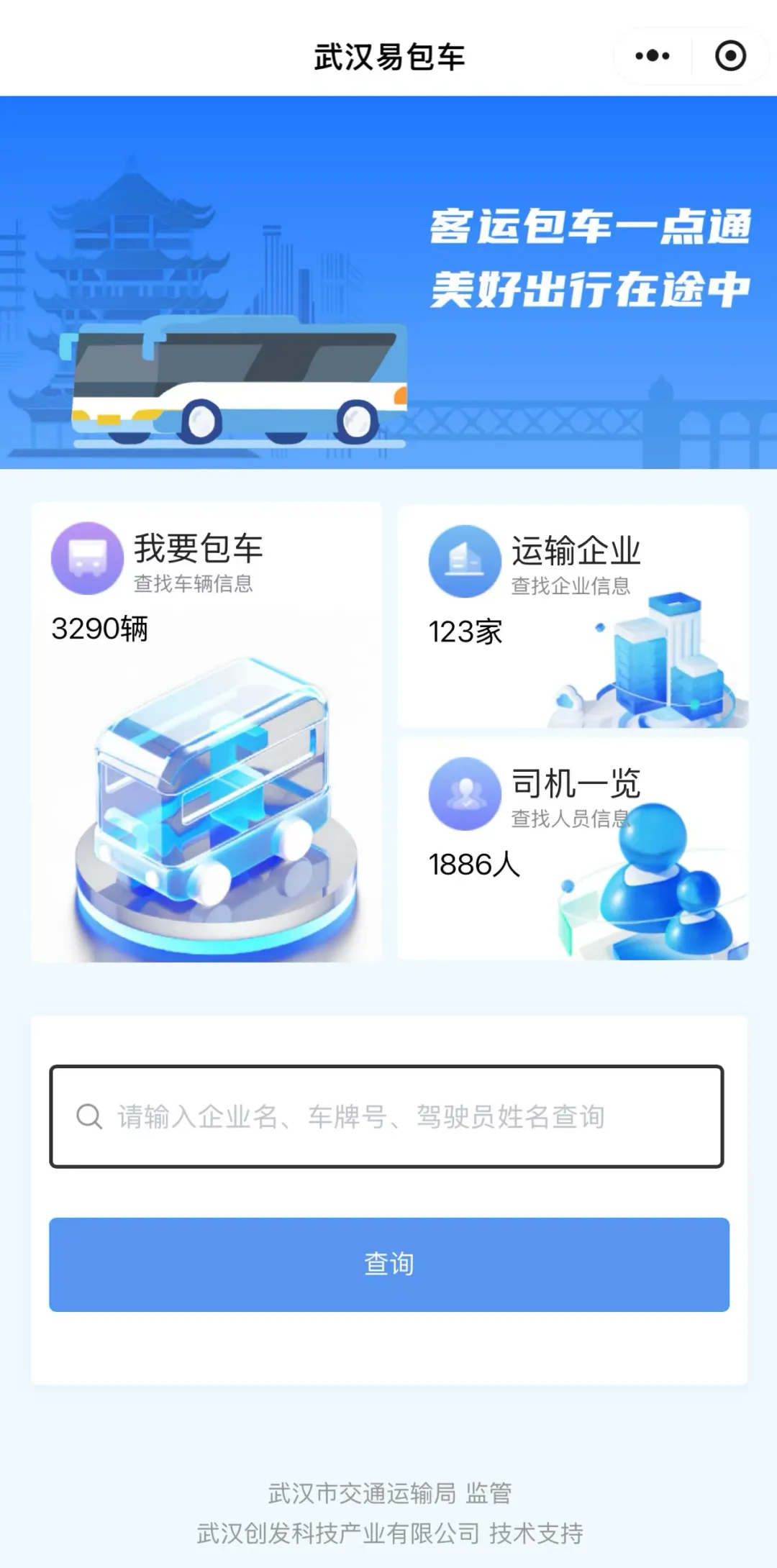 为满足游客个性化出行需求,将向社会公众推广“武汉易包车”微信小程序,方便市民和游客根据自身运输需求查询搜索相关客运企业,快速准确选择个性化运输服务,有效提高出行供需适配度和便捷舒适感。