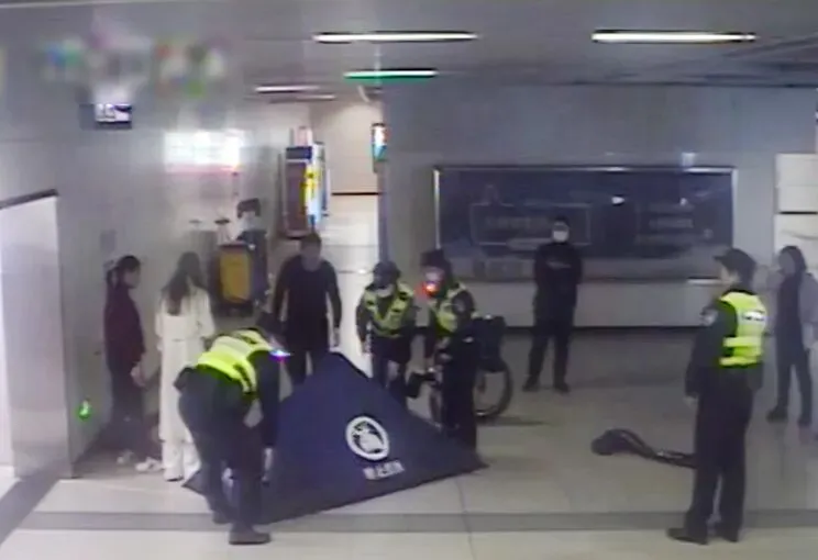 产妇丈夫白先生(左)为值班站长杨君城(右)送来锦旗,表示感谢。