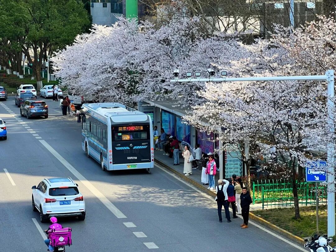 以“交旅融合”助力旅游、消费市场繁荣,地铁运营公司开展“乘着地铁游武汉”主题活动,推出旅游1日票,编制《2026赏花季城市出行指南》,开行“樱悦四季”樱花主题专列;“武汉东—武汉东”环城铁路加密运营班次,成为江城网红游览线路并获央视聚焦报道。公交集团精准对接文旅活动需求,安排50台公交专车以“车等人”模式,保障3.5万“草莓音乐节”乐迷凌晨安全返程;组建“蒲公英”“星星之火”等志愿服务队,在祭扫专线乘车点设置候车长廊、雨阳棚、爱心座椅,发放“帮扶卡”,用暖心便民服务为群众出行保驾护航。