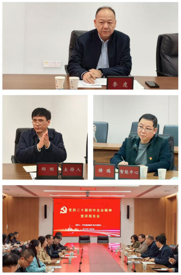 为贯彻落实市交通运输局党组关于学习宣传贯彻党的二十届四中全会精神有关工作要求,12月9日上午,市交通运输局党组成员、副局长李虎同志为局科信处、智能中心宣讲党的二十届四中全会精神。会议由科信处处长郑刚同志主持,局科信处、智能中心全体干部职工参加。