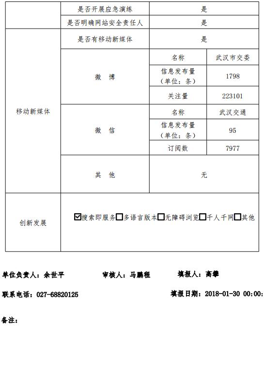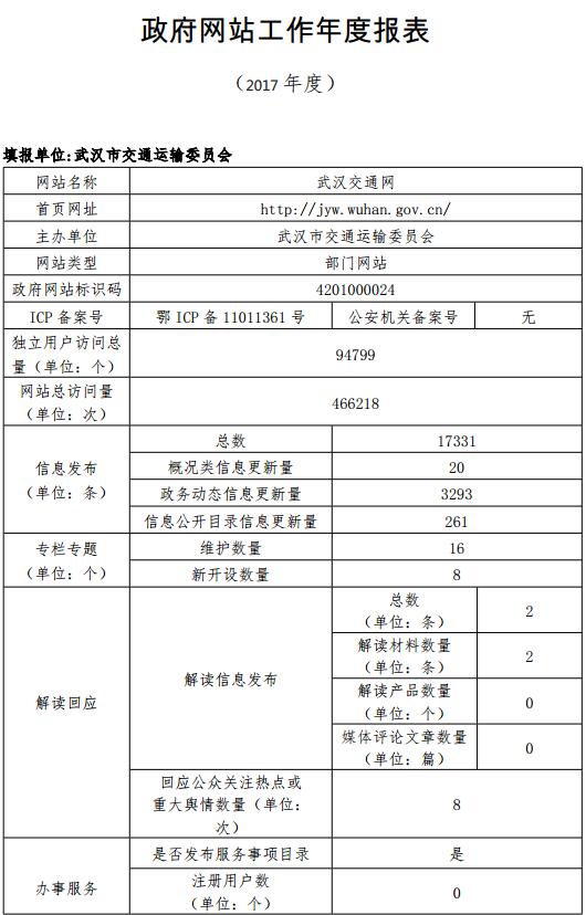 武汉市交通运输委员会政府网站工作年度报表(2017年度)