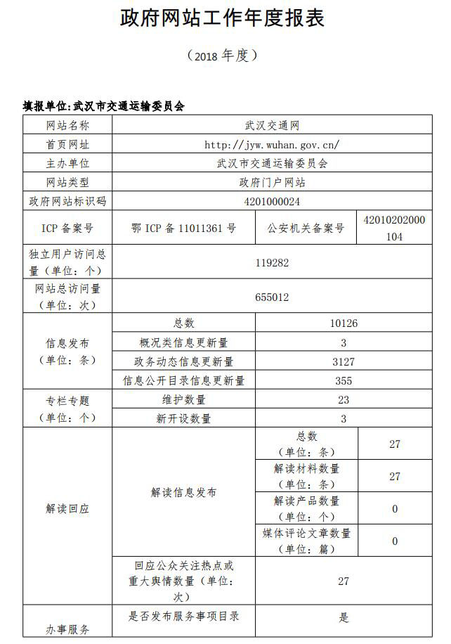 市交通运输委员会2018年度政府网站工作年度报表