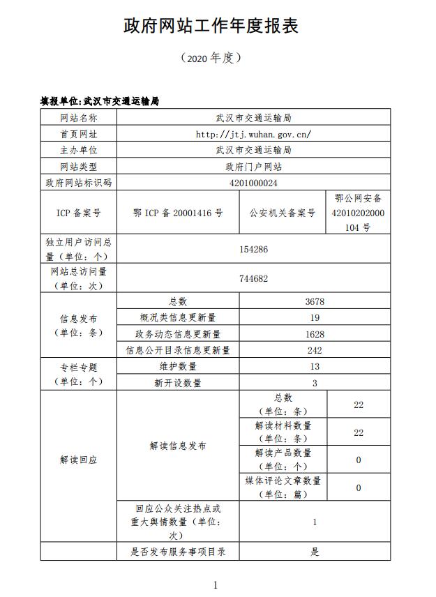 市交通运输局2020年度政府网站工作年度报表