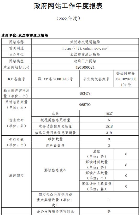 市交通运输局2022年度政府网站工作年度报表