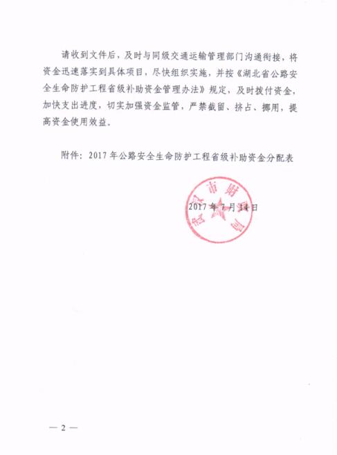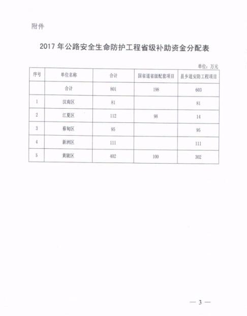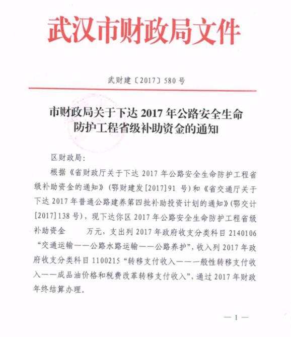 市财政局关于下达2017年公路安全生命防护工程省级补助资金的通知(武财建[2017]580号)