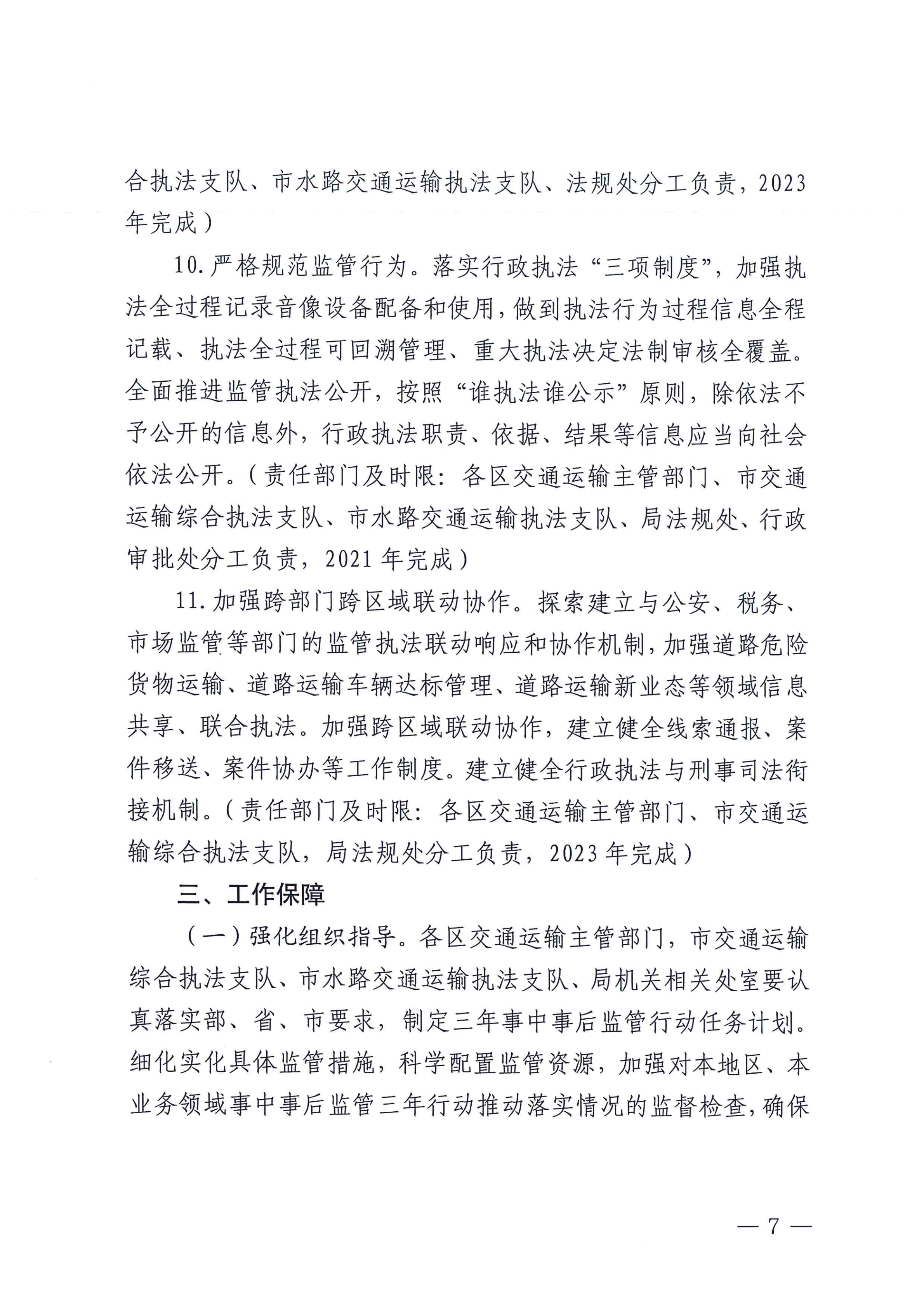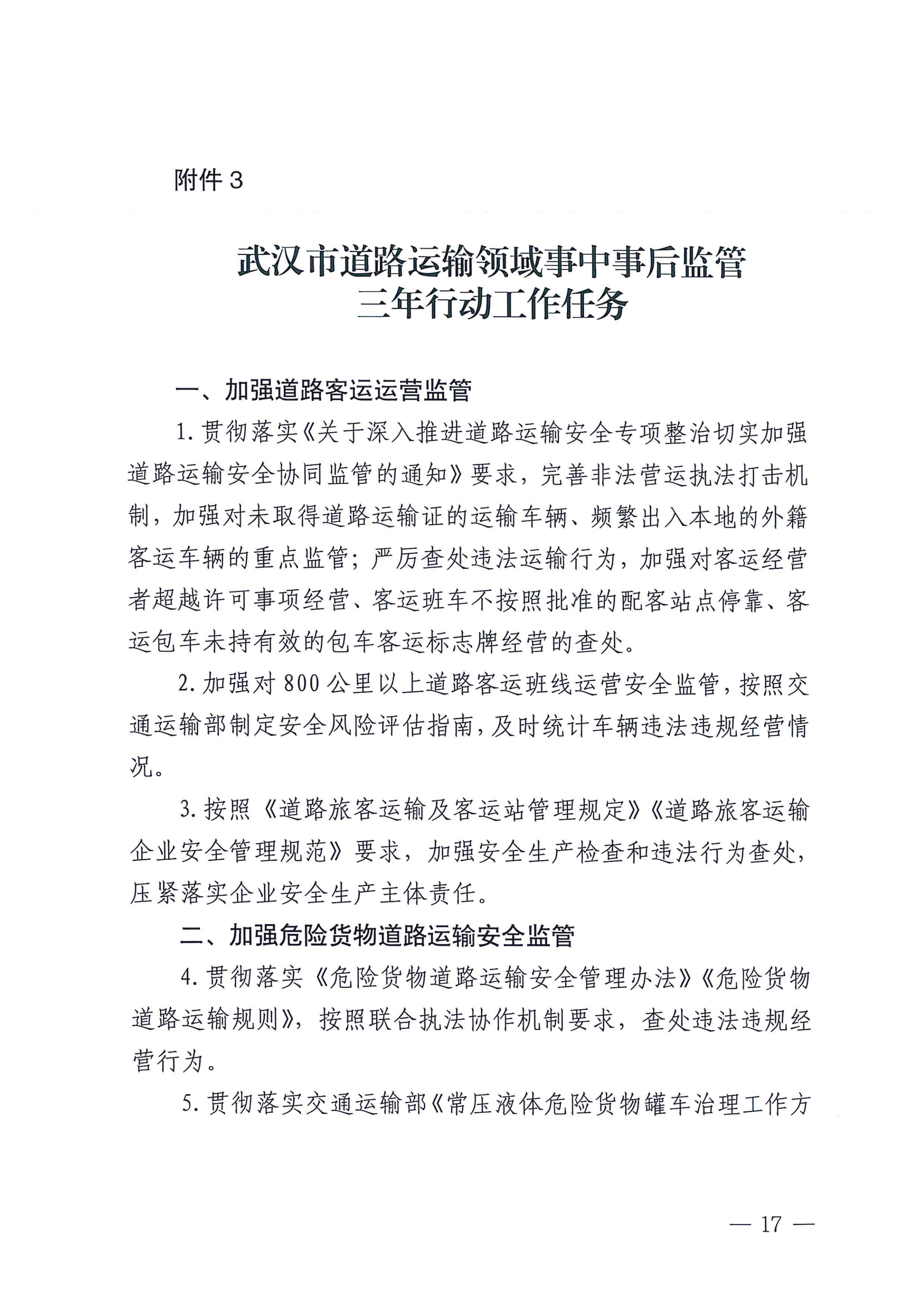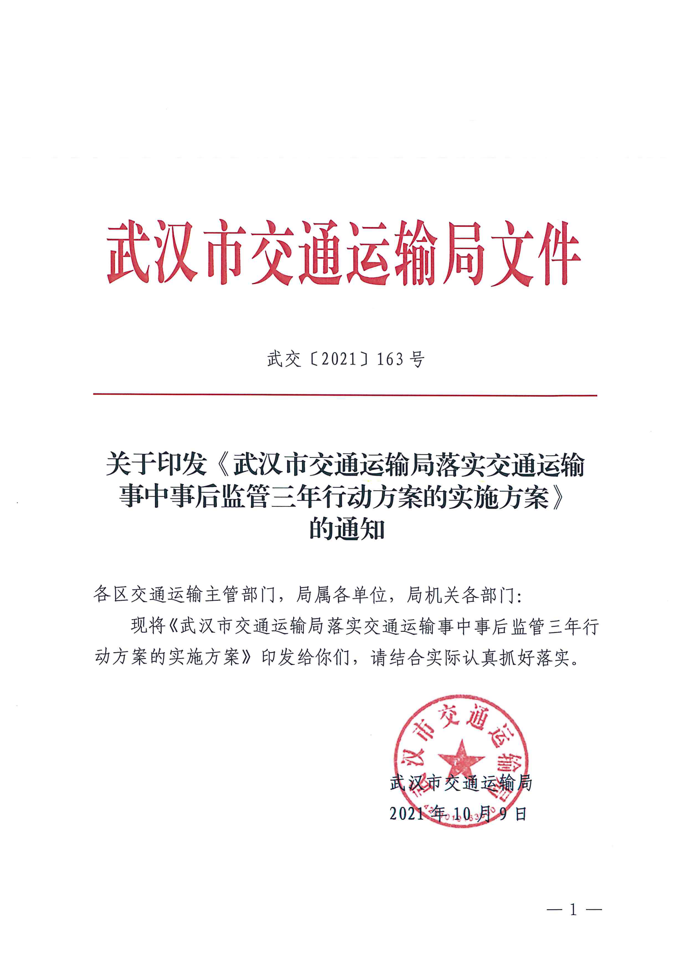 关于印发《武汉市交通局落实交通运输事中事后监管三年行动方案的实施方案》的通知